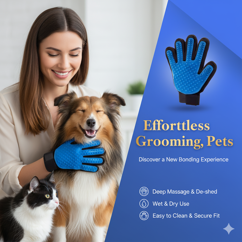 Stainless Steel Pet Grooming Glove - Gentle Deshedding Brush